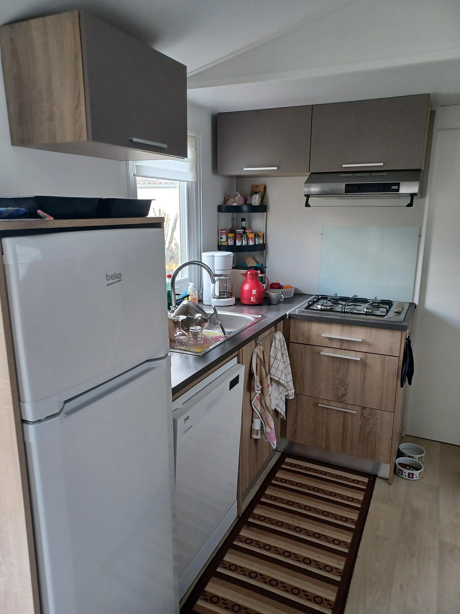Moderne, goed geïsoleerde stacaravan met 3 slaapkamers, ruime living en L-vormige open keuken. Voorzien van airco/verwarming met app-bediening (2023), ideaal voor alle seizoenen.