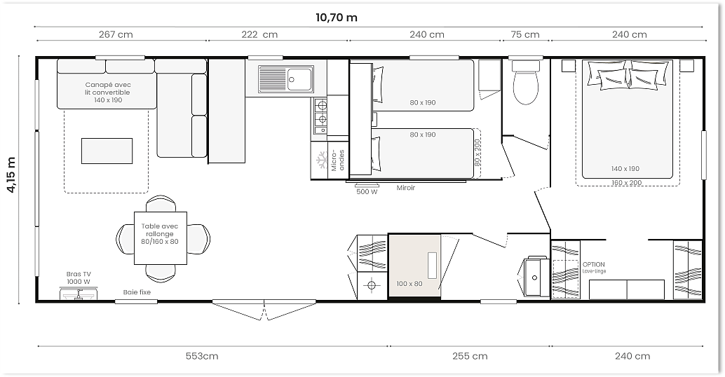 De IRM Tournesol staat bekend om zijn degelijk Frans vakmanschap, goede isolatie en duurzame afwerking, wat zorgt voor een aangenaam verblijf gedurende het hele seizoen.