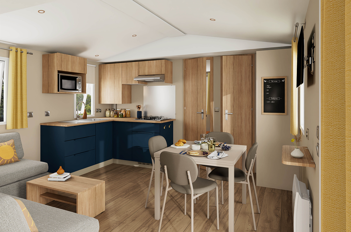 De stacaravan beschikt over 2 slaapkamers, waardoor ze perfect geschikt is voor gezinsgebruik of gasten. De leefruimte is licht en praktisch ingedeeld en sluit mooi aan op de functionele keuken. Dankzij de doordachte indeling biedt deze stacaravan optimaal wooncomfort.